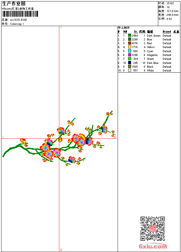 - emb花版参数: 大小:140.00 KB / 尺寸:249*122[毫米] / 针数:15107针 / 线色:10 / 格式:emb / 版本:9