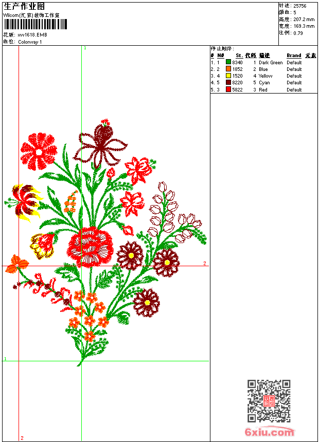 - emb花版参数: 大小:204.00 KB / 尺寸:169*207[毫米] / 针数:25756针 / 线色:5 / 格式:emb / 版本:9