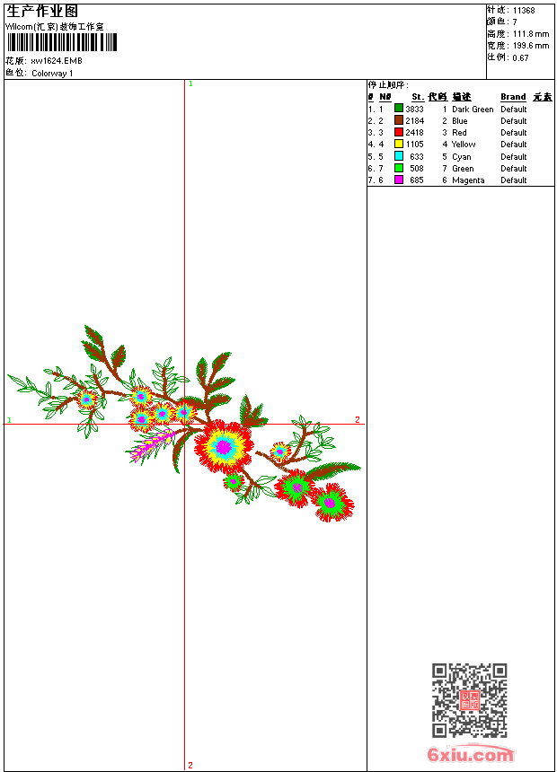 - emb花版参数: 大小:102.00 KB / 尺寸:200*112[毫米] / 针数:11368针 / 线色:7 / 格式:emb / 版本:9