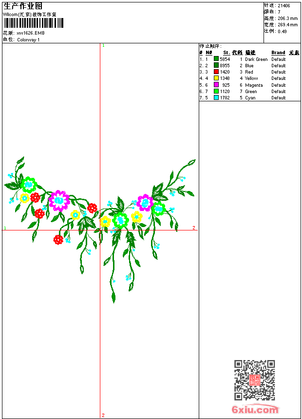 - emb花版参数: 大小:180.00 KB / 尺寸:269*206[毫米] / 针数:21406针 / 线色:7 / 格式:emb / 版本:9