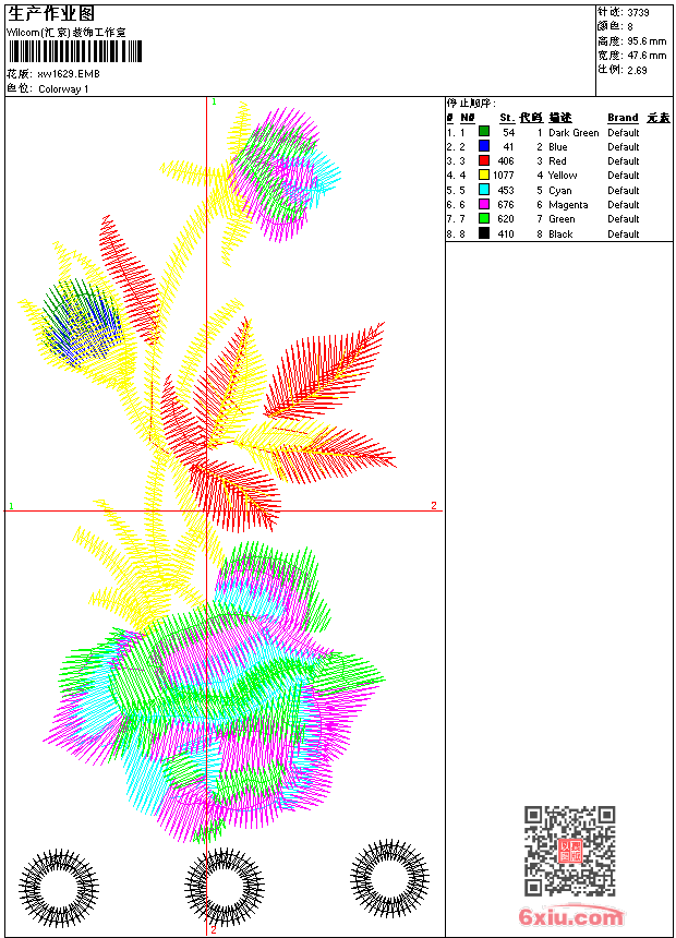 - 版带文件需绣花软件方可打开,可配色打印导出各种格式或直接上机绣。如无绣花软件可下载1:1模拟效果图。