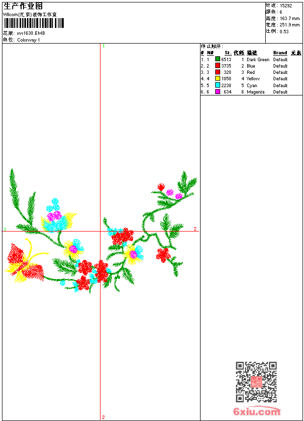 - emb花版参数: 大小:75.00 KB / 尺寸:252*164[毫米] / 针数:15292针 / 线色:6 / 格式:emb / 版本:9