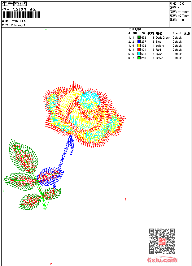 - 版带文件需绣花软件方可打开,可配色打印导出各种格式或直接上机绣。如无绣花软件可下载1:1模拟效果图。