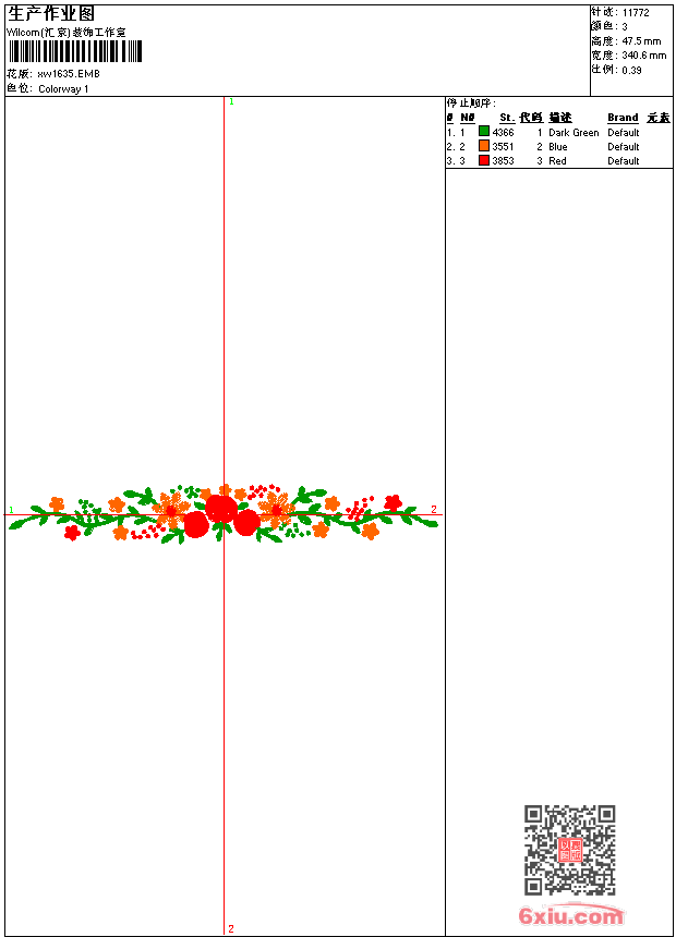 - emb花版参数: 大小:75.50 KB / 尺寸:341*48[毫米] / 针数:11772针 / 线色:3 / 格式:emb / 版本:9