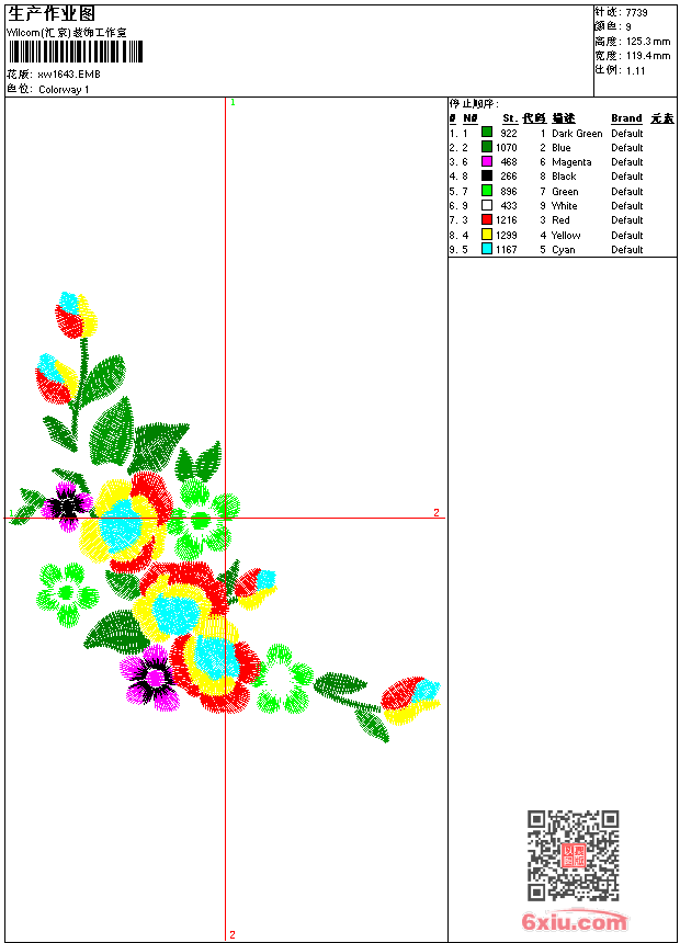 - 版带文件需绣花软件方可打开,可配色打印导出各种格式或直接上机绣。如无绣花软件可下载1:1模拟效果图。
