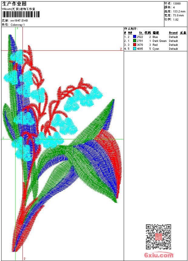 - 版带文件需绣花软件方可打开,可配色打印导出各种格式或直接上机绣。如无绣花软件可下载1:1模拟效果图。