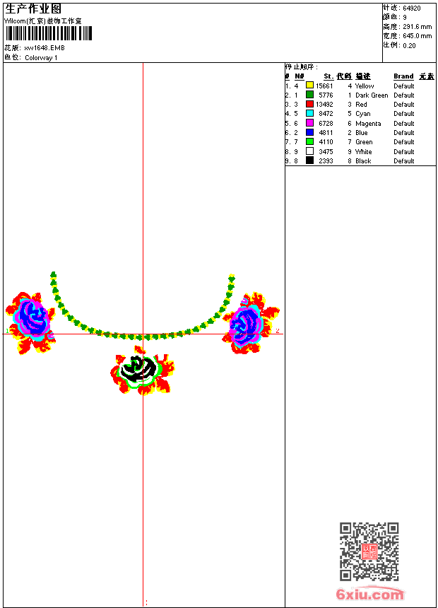 - emb花版参数: 大小:260.00 KB / 尺寸:645*292[毫米] / 针数:64920针 / 线色:9 / 格式:emb / 版本:9