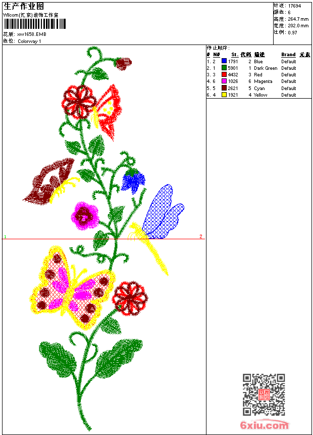 - emb花版参数: 大小:104.00 KB / 尺寸:202*265[毫米] / 针数:17694针 / 线色:6 / 格式:emb / 版本:9