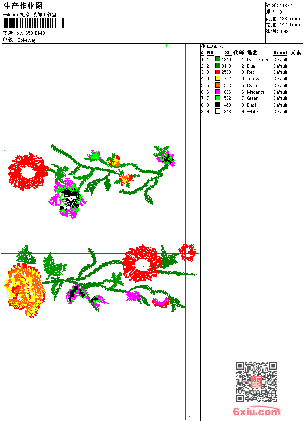 - 版带文件需绣花软件方可打开,可配色打印导出各种格式或直接上机绣。如无绣花软件可下载1:1模拟效果图。
