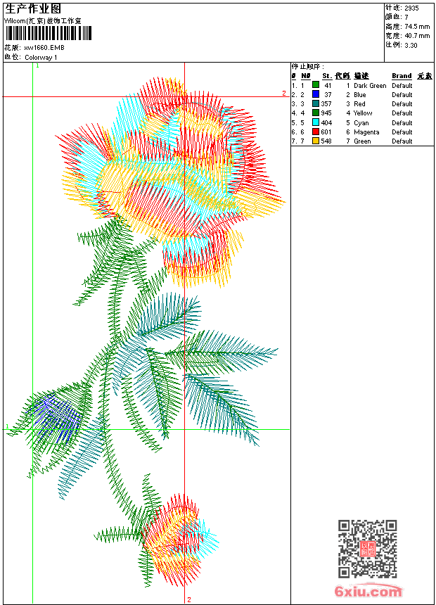 - emb花版参数: 大小:40.00 KB / 尺寸:41*74[毫米] / 针数:2935针 / 线色:7 / 格式:emb / 版本:9