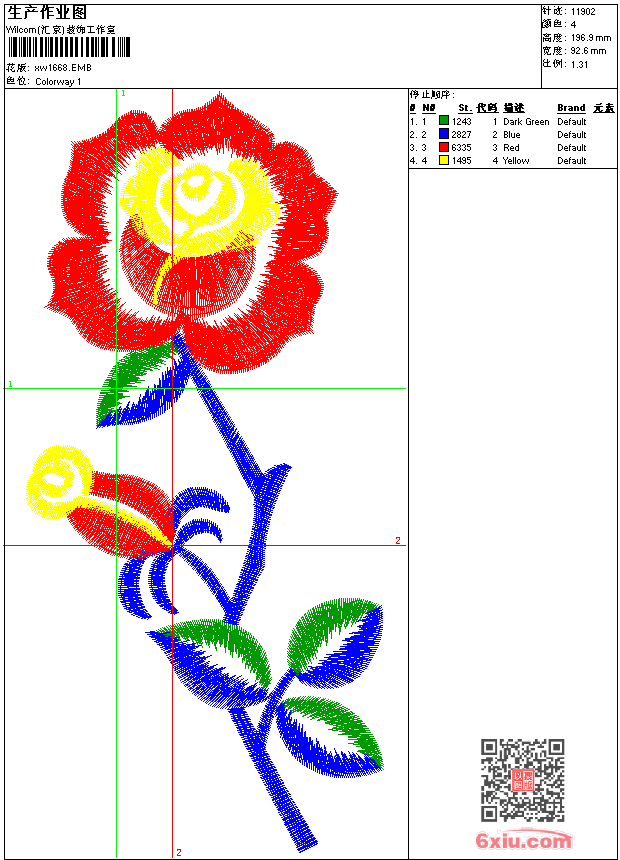 - 版带文件需绣花软件方可打开,可配色打印导出各种格式或直接上机绣。如无绣花软件可下载1:1模拟效果图。
