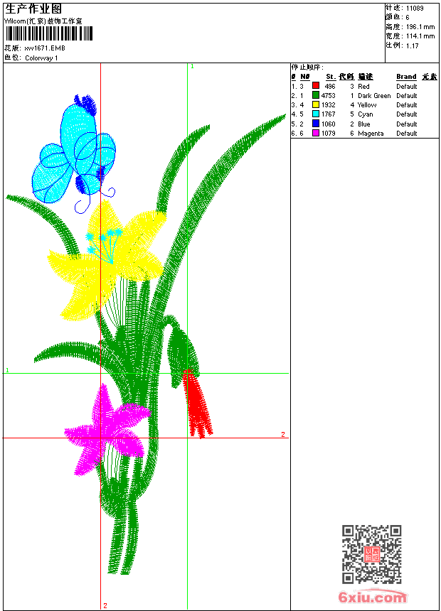 - emb花版参数: 大小:59.00 KB / 尺寸:114*196[毫米] / 针数:11089针 / 线色:6 / 格式:emb / 版本:9