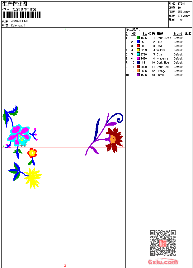 - emb花版参数: 大小:99.00 KB / 尺寸:371*256[毫米] / 针数:17581针 / 线色:10 / 格式:emb / 版本:9