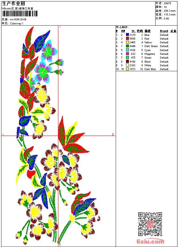 - emb花版参数: 大小:177.50 KB / 尺寸:115*298[毫米] / 针数:29879针 / 线色:10 / 格式:emb / 版本:9