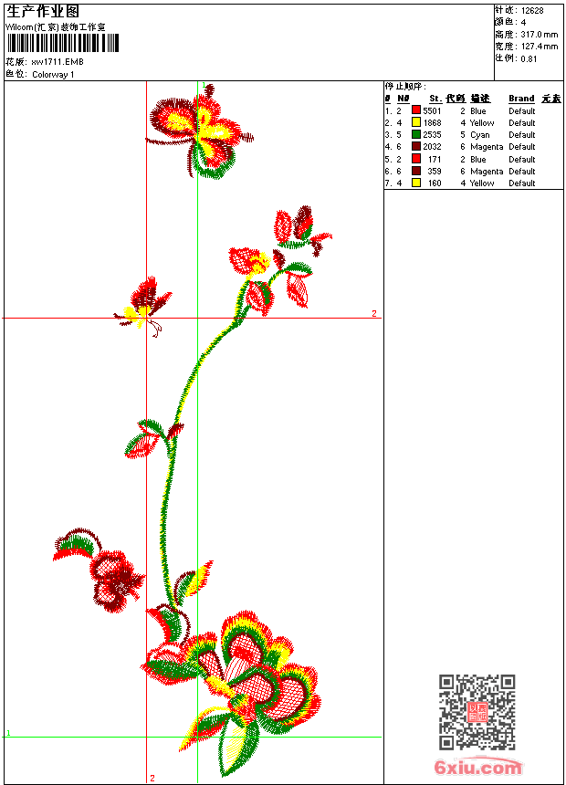 - emb花版参数: 大小:108.50 KB / 尺寸:127*317[毫米] / 针数:12628针 / 线色:4 / 格式:emb / 版本:9
