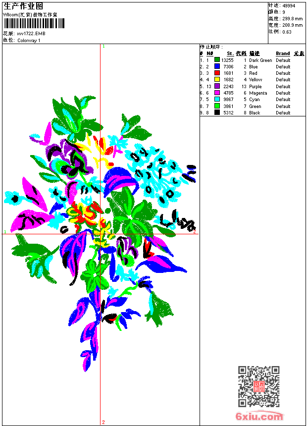 - 版带文件需绣花软件方可打开,可配色打印导出各种格式或直接上机绣。如无绣花软件可下载1:1模拟效果图。