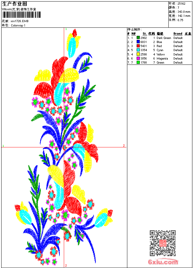 - emb花版参数: 大小:159.00 KB / 尺寸:142*343[毫米] / 针数:25162针 / 线色:7 / 格式:emb / 版本:9