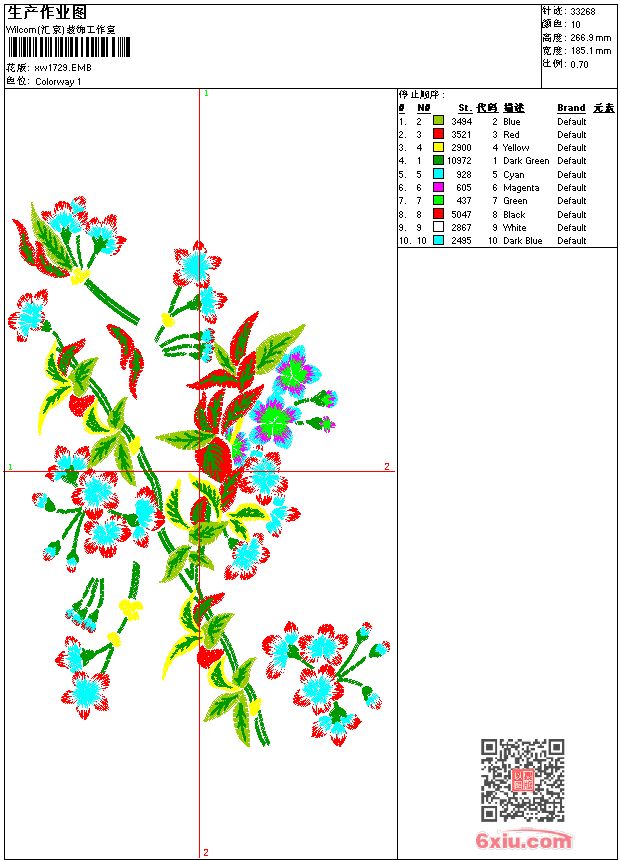 - emb花版参数: 大小:214.00 KB / 尺寸:185*267[毫米] / 针数:33268针 / 线色:10 / 格式:emb / 版本:9
