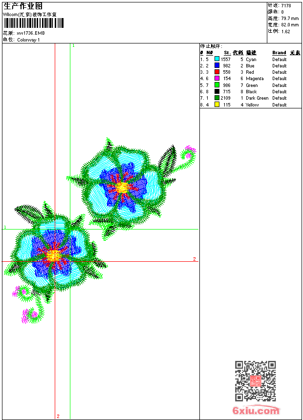 - 版带文件需绣花软件方可打开,可配色打印导出各种格式或直接上机绣。如无绣花软件可下载1:1模拟效果图。