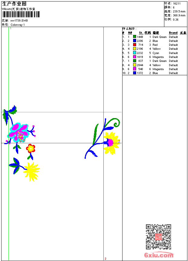 - emb花版参数: 大小:104.50 KB / 尺寸:369*239[毫米] / 针数:16211针 / 线色:6 / 格式:emb / 版本:9