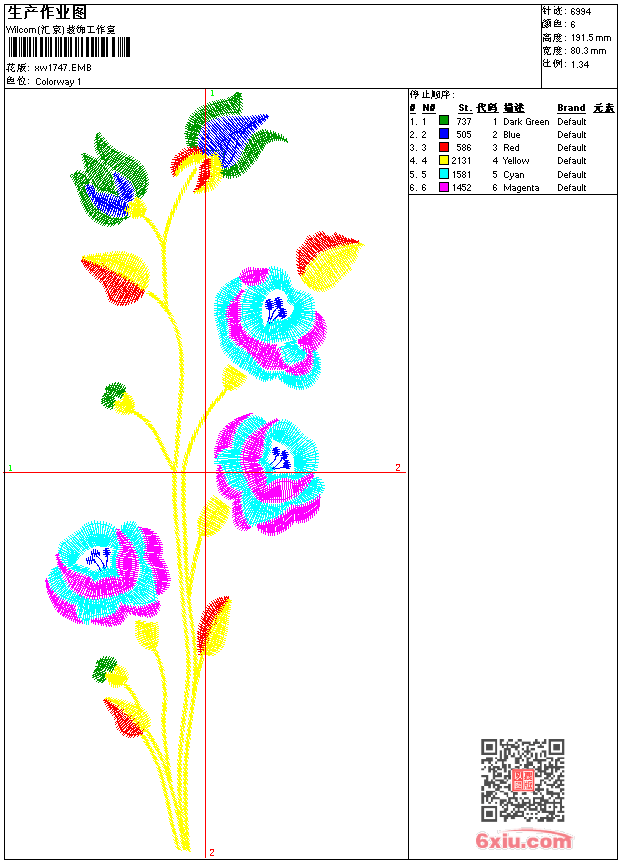 - emb花版参数: 大小:54.50 KB / 尺寸:80*192[毫米] / 针数:6994针 / 线色:6 / 格式:emb / 版本:9
