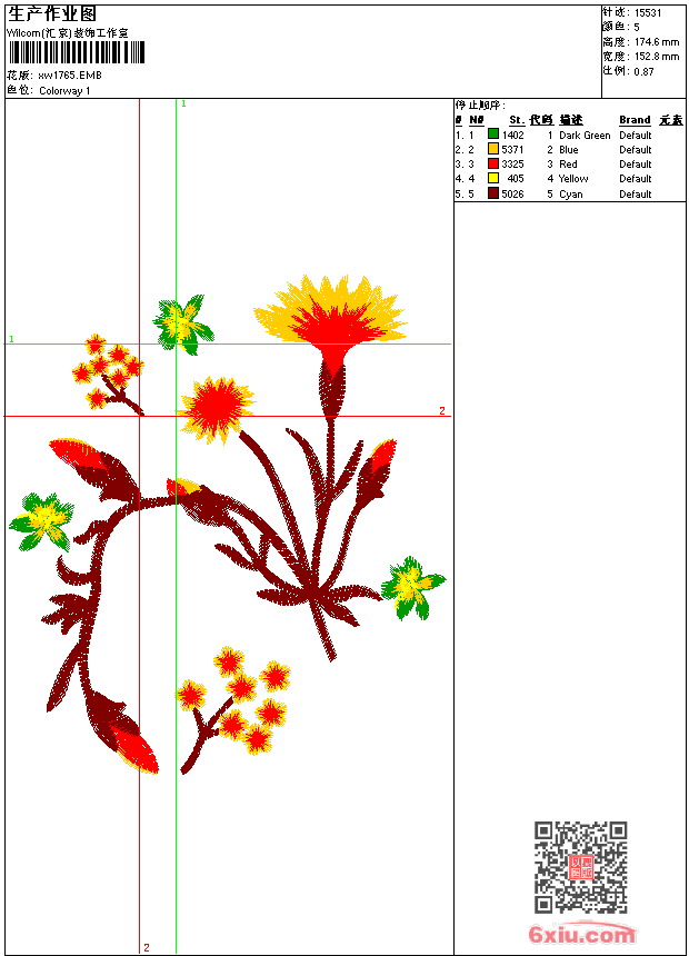 - emb花版参数: 大小:88.50 KB / 尺寸:153*175[毫米] / 针数:15531针 / 线色:5 / 格式:emb / 版本:9