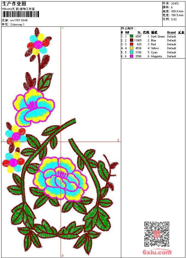- emb花版参数: 大小:213.50 KB / 尺寸:159*310[毫米] / 针数:32472针 / 线色:6 / 格式:emb / 版本:9