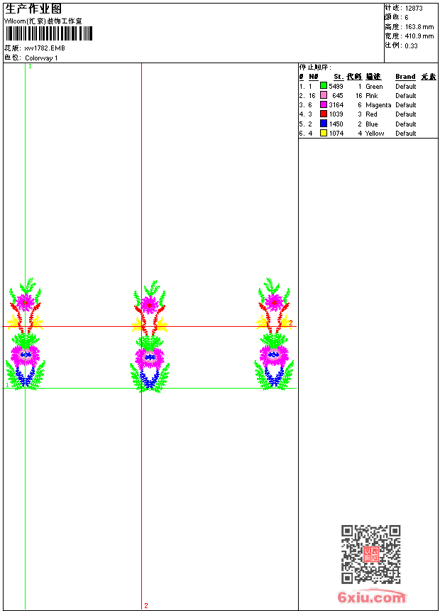 - emb花版参数: 大小:51.00 KB / 尺寸:411*164[毫米] / 针数:12873针 / 线色:6 / 格式:emb / 版本:9