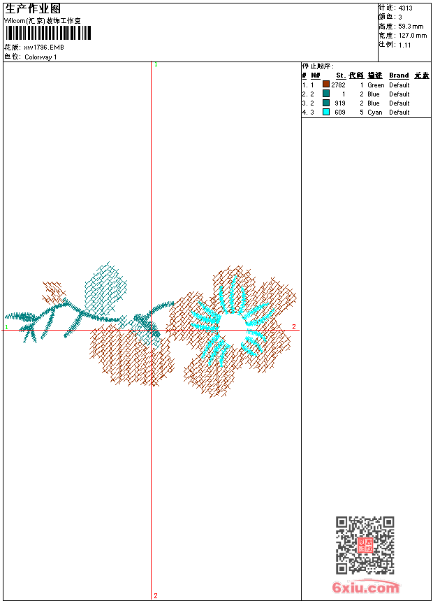 - emb花版参数: 大小:84.00 KB / 尺寸:127*59[毫米] / 针数:4313针 / 线色:3 / 格式:emb / 版本:9