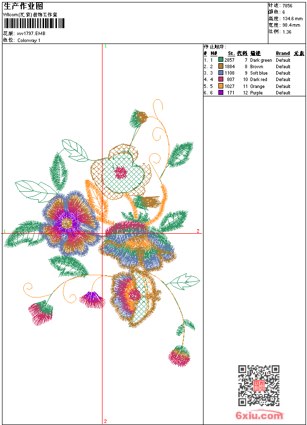 - emb花版参数: 大小:56.50 KB / 尺寸:98*135[毫米] / 针数:7856针 / 线色:6 / 格式:emb / 版本:9