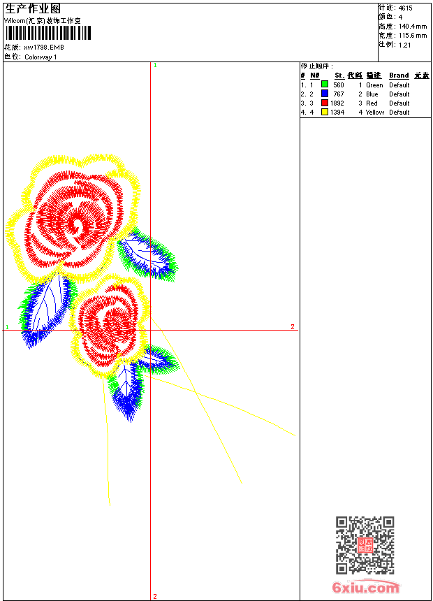 - emb花版参数: 大小:42.50 KB / 尺寸:116*140[毫米] / 针数:4615针 / 线色:4 / 格式:emb / 版本:9