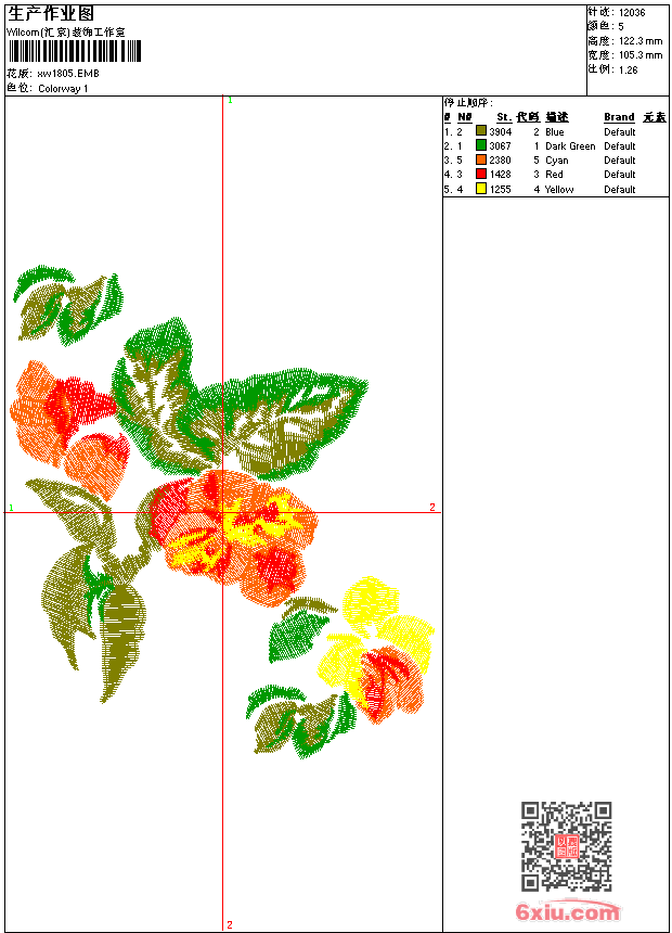 - emb花版参数: 大小:88.50 KB / 尺寸:105*122[毫米] / 针数:12036针 / 线色:5 / 格式:emb / 版本:9