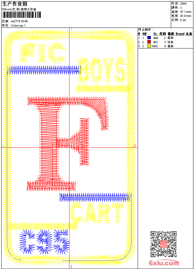 - emb花版参数: 大小:28.50 KB / 尺寸:27*47[毫米] / 针数:2589针 / 线色:3 / 格式:emb / 版本:9