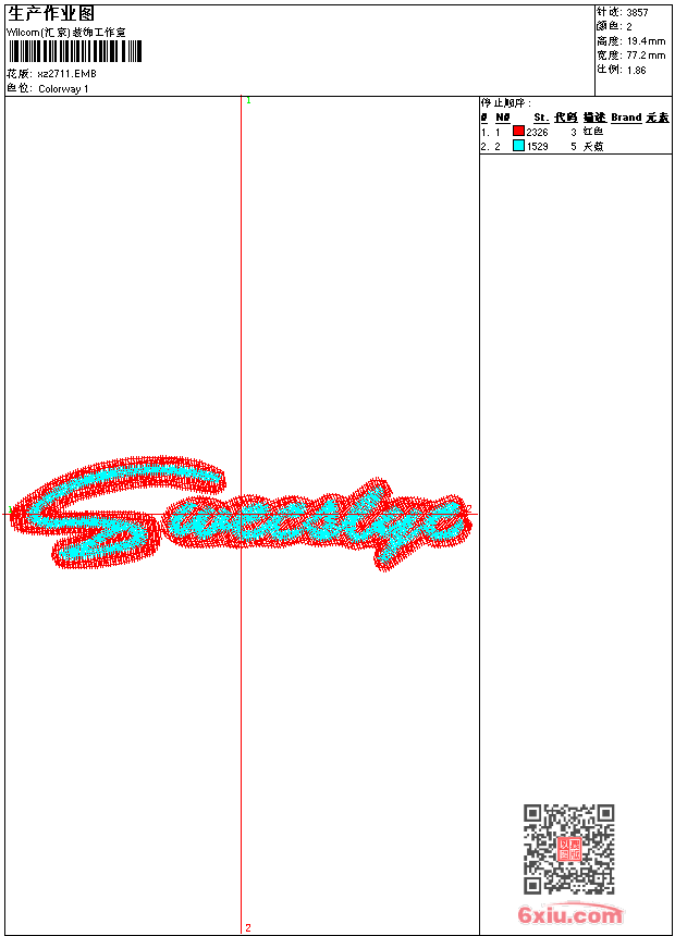 - emb花版参数: 大小:32.50 KB / 尺寸:77*19[毫米] / 针数:3857针 / 线色:2 / 格式:emb / 版本:9