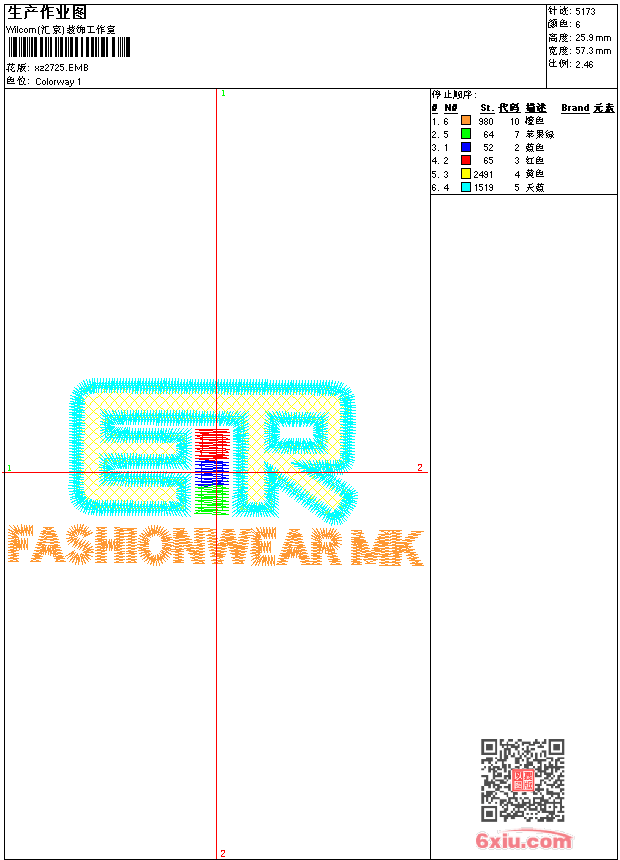 - emb花版参数: 大小:34.50 KB / 尺寸:57*26[毫米] / 针数:5173针 / 线色:6 / 格式:emb / 版本:9