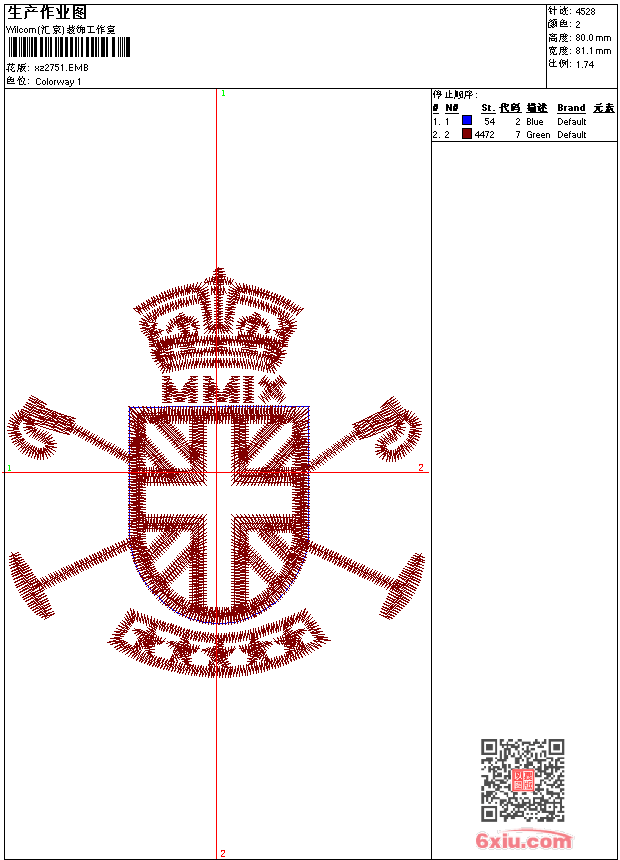 - 版带文件需绣花软件方可打开,可配色打印导出各种格式或直接上机绣。如无绣花软件可下载1:1模拟效果图。