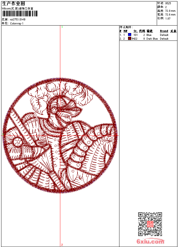 - 版带文件需绣花软件方可打开,可配色打印导出各种格式或直接上机绣。如无绣花软件可下载1:1模拟效果图。