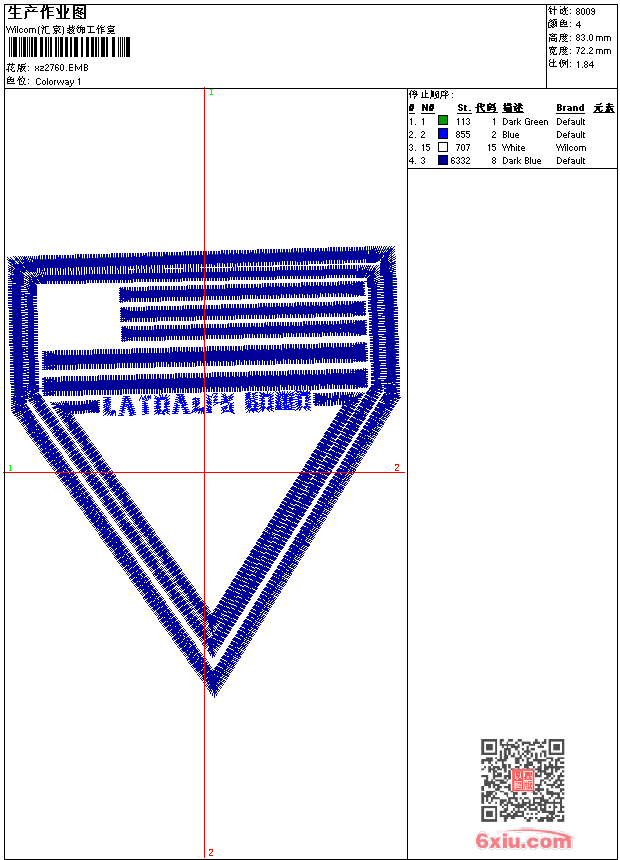 - emb花版参数: 大小:33.50 KB / 尺寸:72*83[毫米] / 针数:8009针 / 线色:4 / 格式:emb / 版本:9