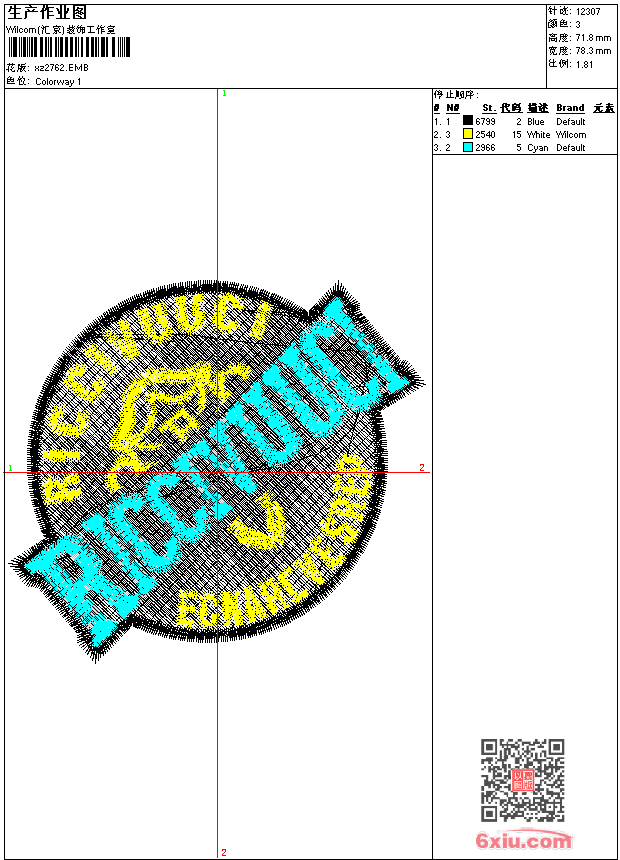 - emb花版参数: 大小:53.00 KB / 尺寸:78*72[毫米] / 针数:12307针 / 线色:3 / 格式:emb / 版本:9