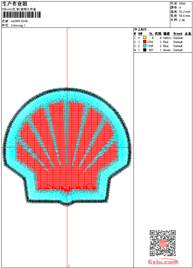 - emb花版参数: 大小:31.00 KB / 尺寸:57*52[毫米] / 针数:5500针 / 线色:4 / 格式:emb / 版本:9