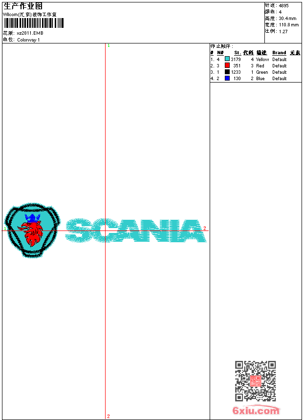 - emb花版参数: 大小:42.00 KB / 尺寸:111*30[毫米] / 针数:4895针 / 线色:4 / 格式:emb / 版本:9