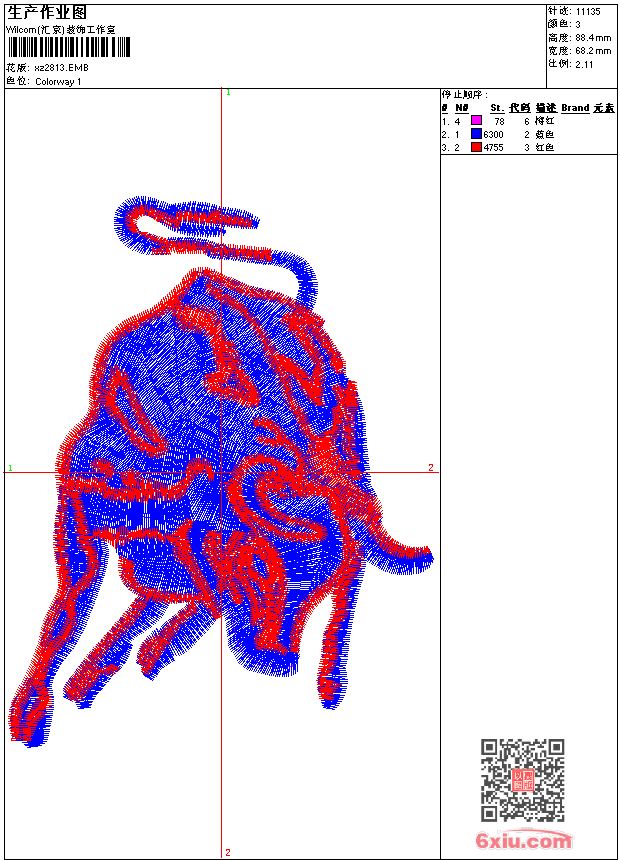 - emb花版参数: 大小:70.00 KB / 尺寸:68*88[毫米] / 针数:11143针 / 线色:3 / 格式:emb / 版本:9