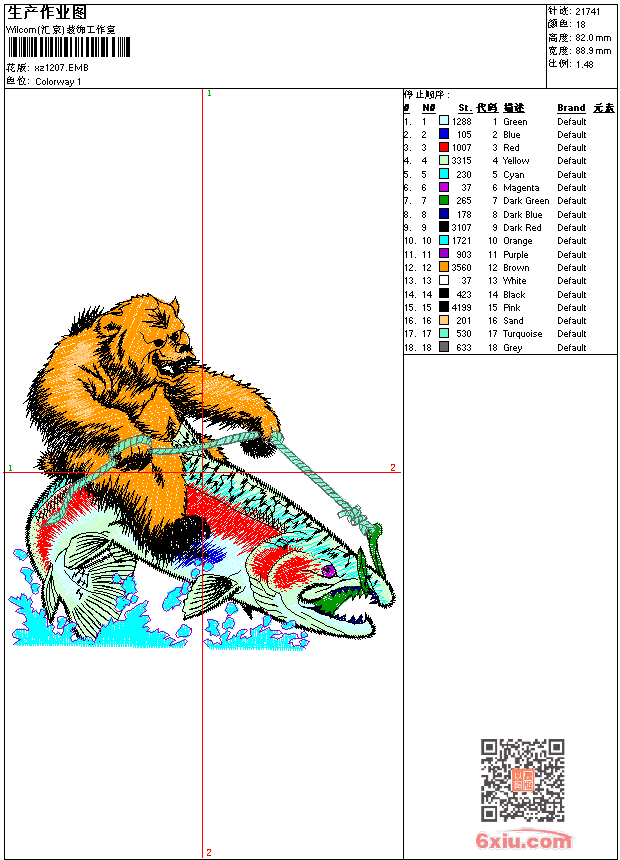 - 版带文件需绣花软件方可打开,可配色打印导出各种格式或直接上机绣。如无绣花软件可下载1:1模拟效果图。
