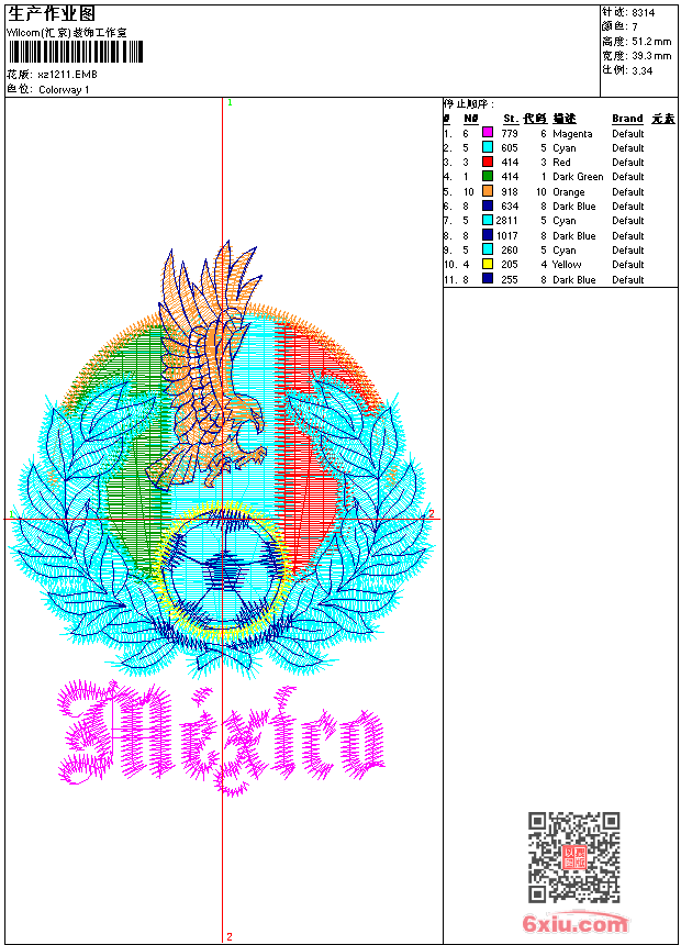 - 版带文件需绣花软件方可打开,可配色打印导出各种格式或直接上机绣。如无绣花软件可下载1:1模拟效果图。