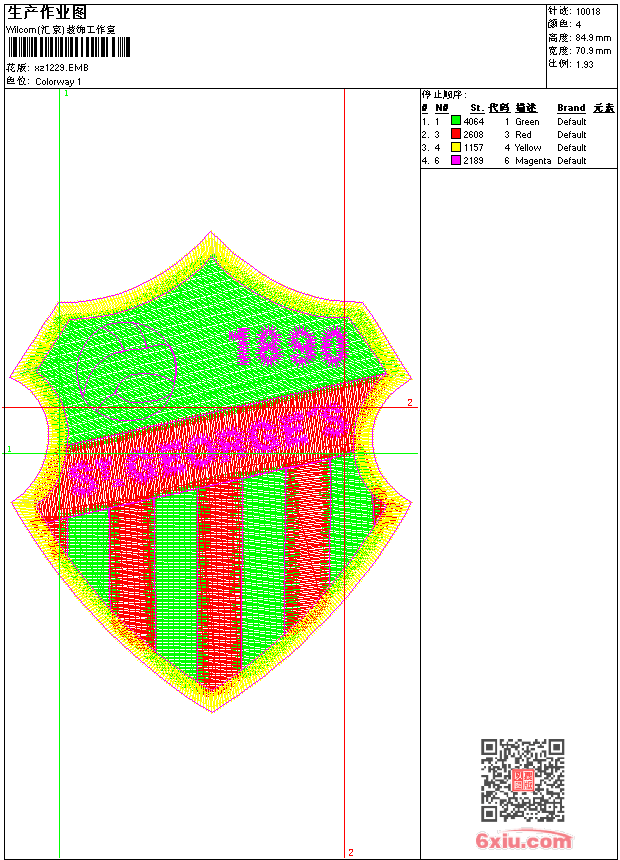 - emb花版参数: 大小:49.50 KB / 尺寸:71*85[毫米] / 针数:10018针 / 线色:4 / 格式:emb / 版本:9