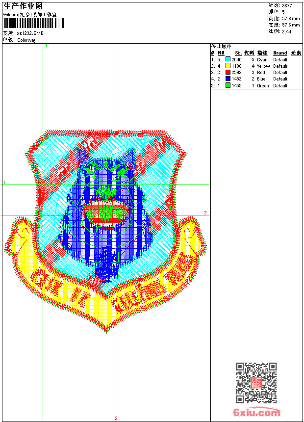 - emb花版参数: 大小:54.50 KB / 尺寸:58*58[毫米] / 针数:8677针 / 线色:5 / 格式:emb / 版本:9