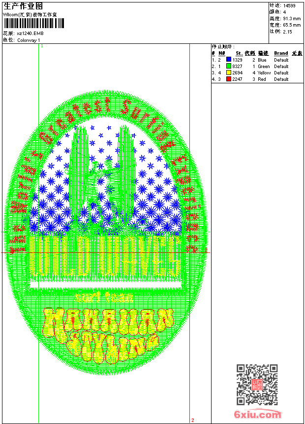 - emb花版参数: 大小:90.50 KB / 尺寸:66*91[毫米] / 针数:14599针 / 线色:4 / 格式:emb / 版本:9
