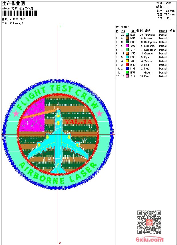 - emb花版参数: 大小:78.50 KB / 尺寸:77*77[毫米] / 针数:14599针 / 线色:12 / 格式:emb / 版本:9