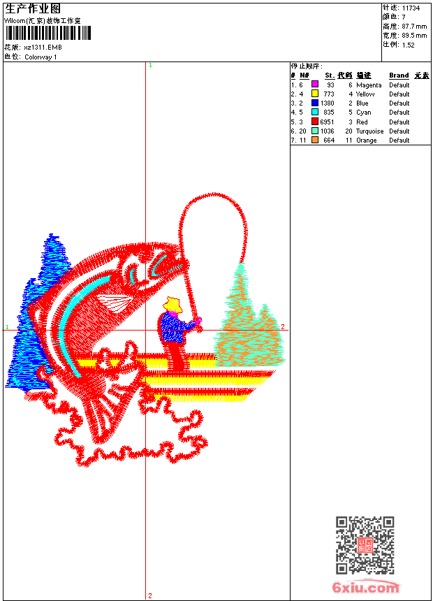 - 版带文件需绣花软件方可打开,可配色打印导出各种格式或直接上机绣。如无绣花软件可下载1:1模拟效果图。