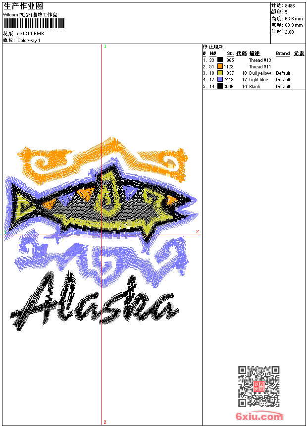 - 版带文件需绣花软件方可打开,可配色打印导出各种格式或直接上机绣。如无绣花软件可下载1:1模拟效果图。